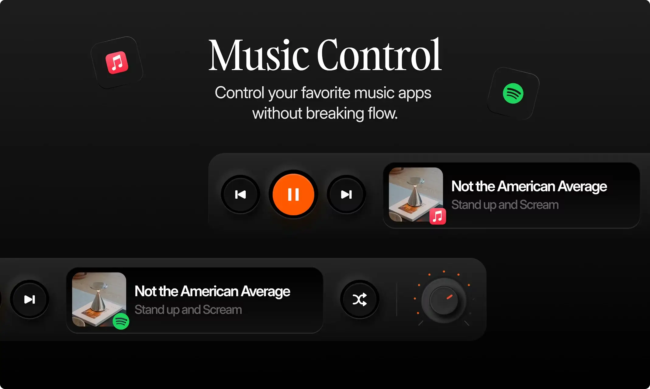 • 直接通过刘海屏控制 Apple Music 和 Spotify 的播放