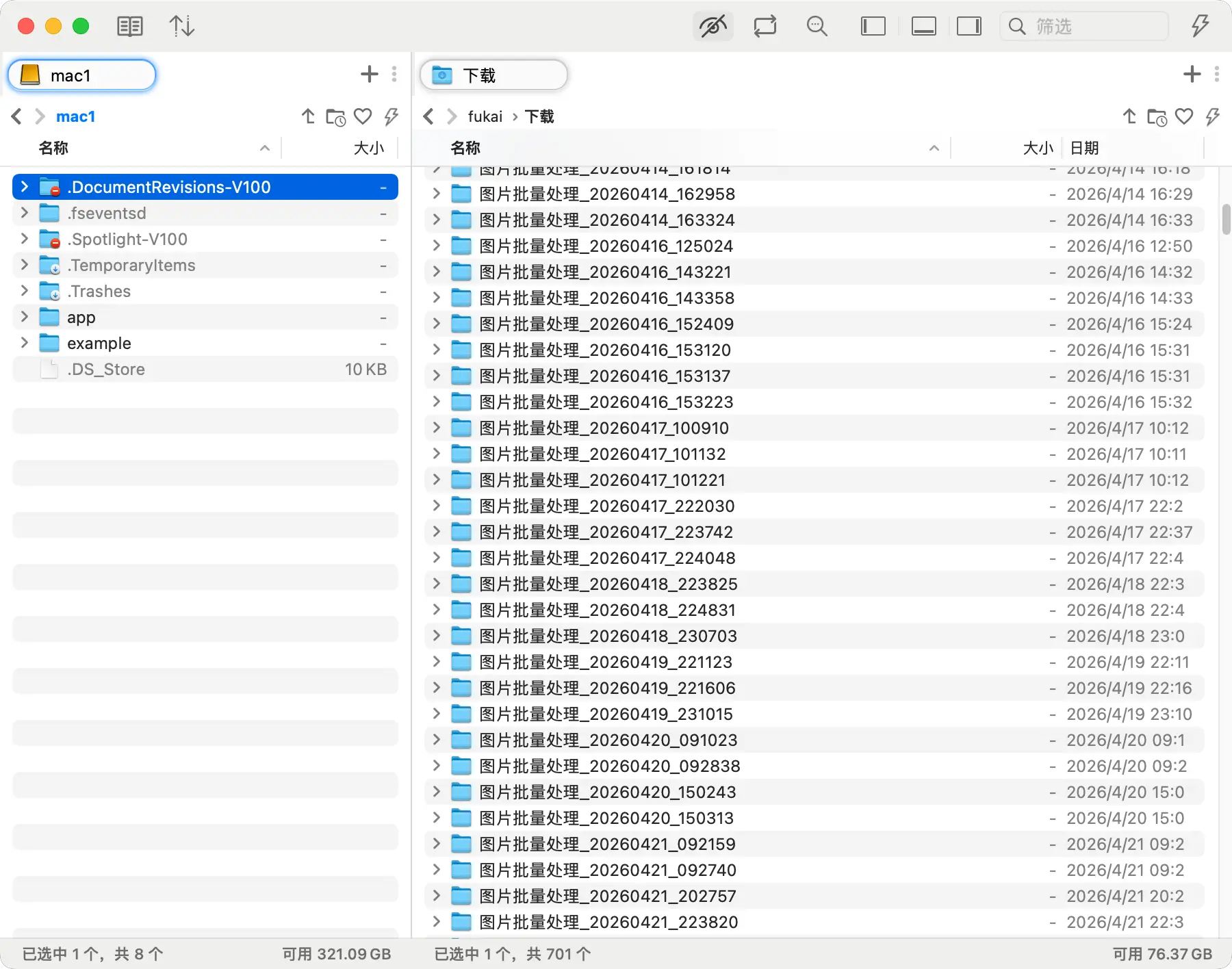 Viper FTP的界面风格与macOS原生文件管理器相似,操作逻辑上尽量贴合Finder的使用习惯。双击文件夹进入下一级,空格键预览文件内容,右键菜单提供压缩、重命名、权限修改等常用功能。本地与远程面板之间支持直接拖拽文件完成上传或下载,传输过程中底部会显示任务队列与实时速率。