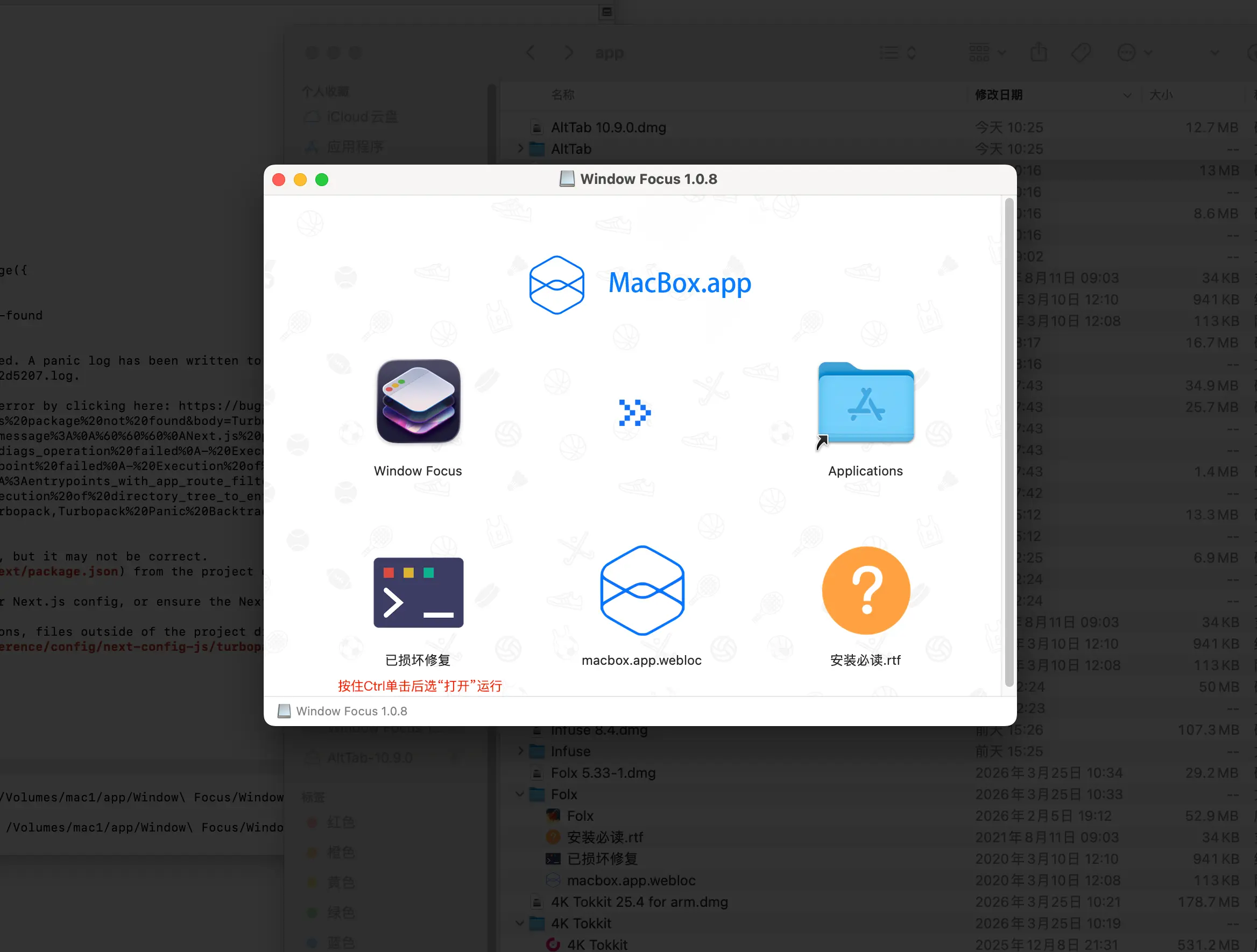 - 将 Window Focus 拖拽到 Applications 文件夹