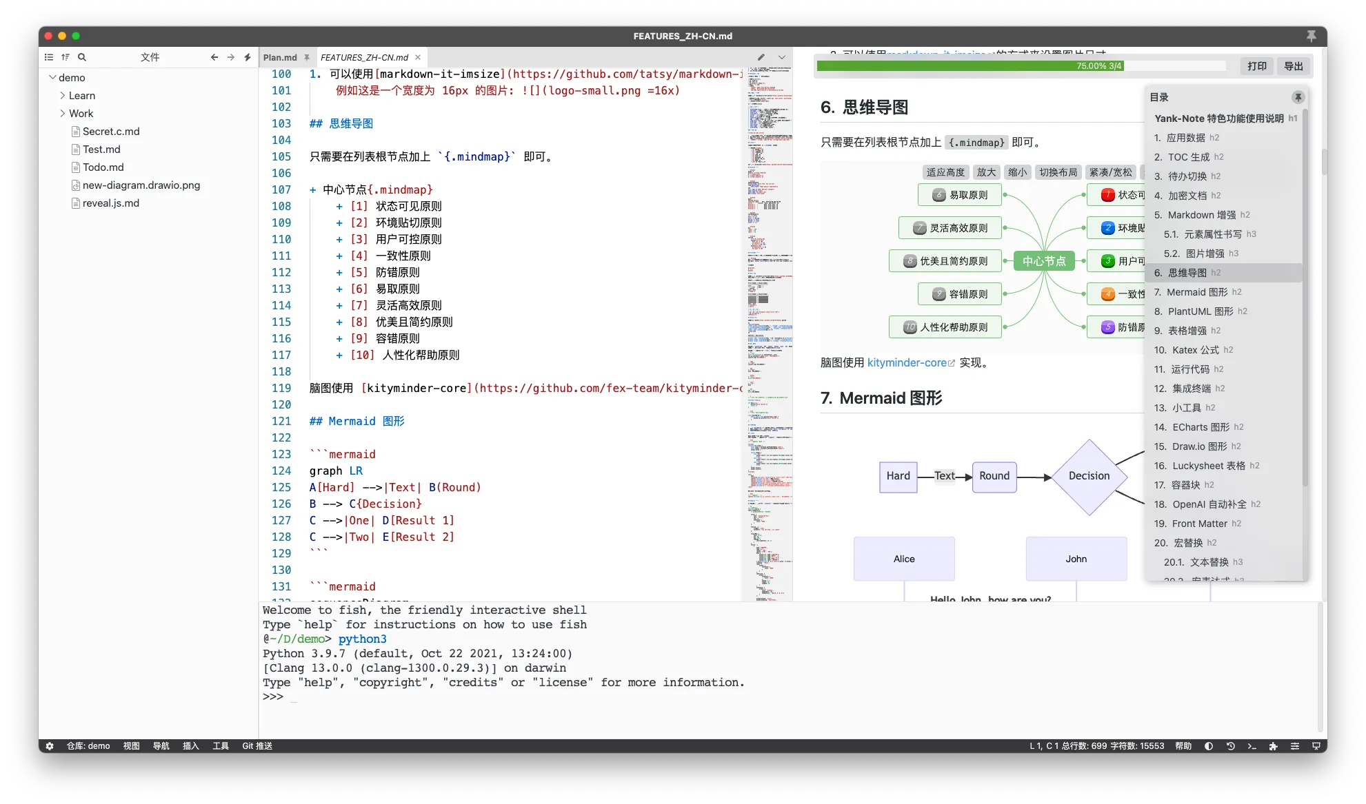 Yank Note是一款专为Mac设计的Markdown编辑器,提供开源透明、本地数据储存、强大的Markdown语法支持、高阶文档功能和丰富插件扩展,确保安全可靠的高效编辑体验。