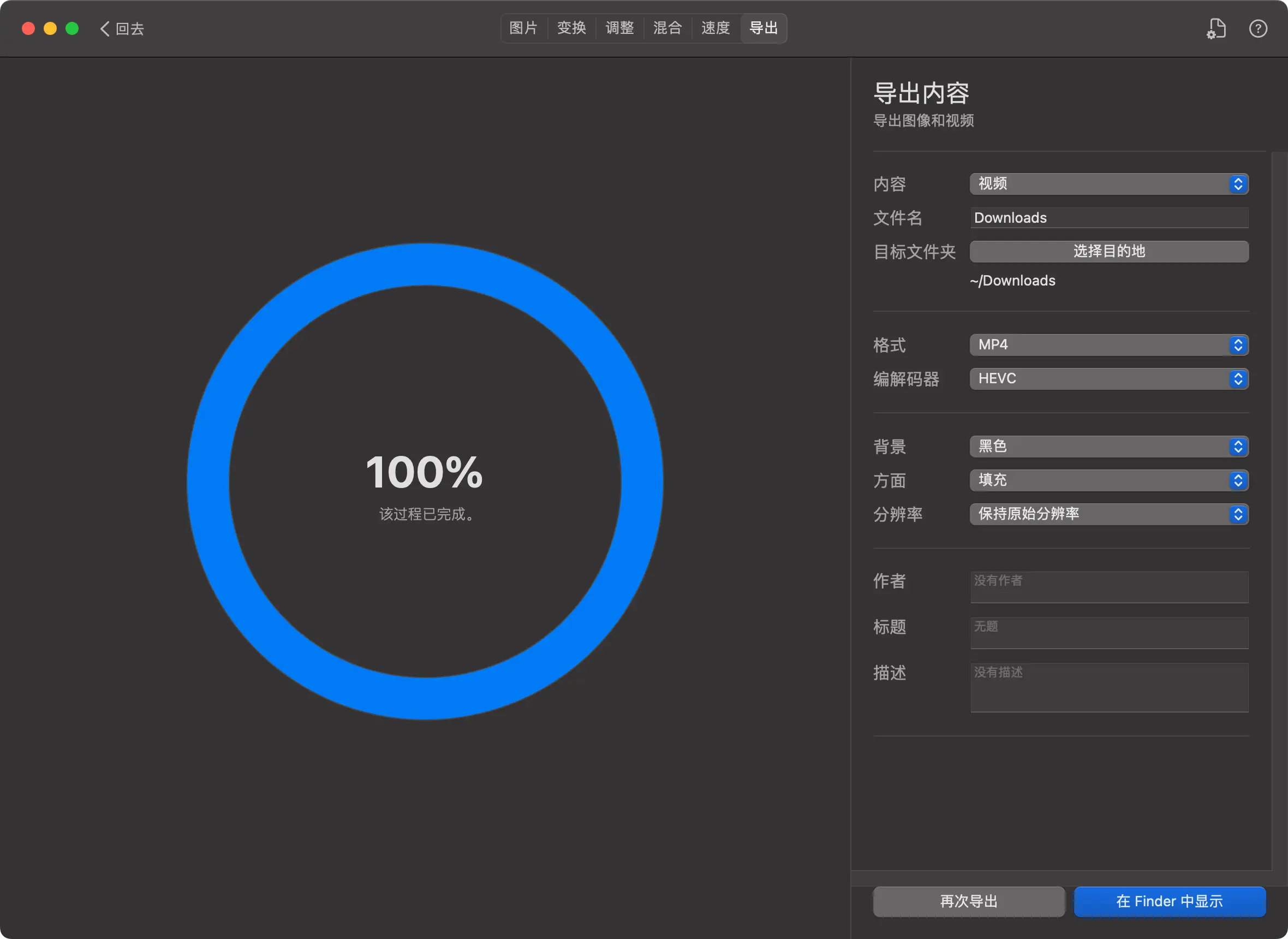 - 灵活的导出选项: 制作完成后,可以将作品导出为 MP4、MOV 等主流视频格式,或导出为 GIF 动图,方便在社交媒体上分享。你还可以控制导出视频的分辨率和帧速率。