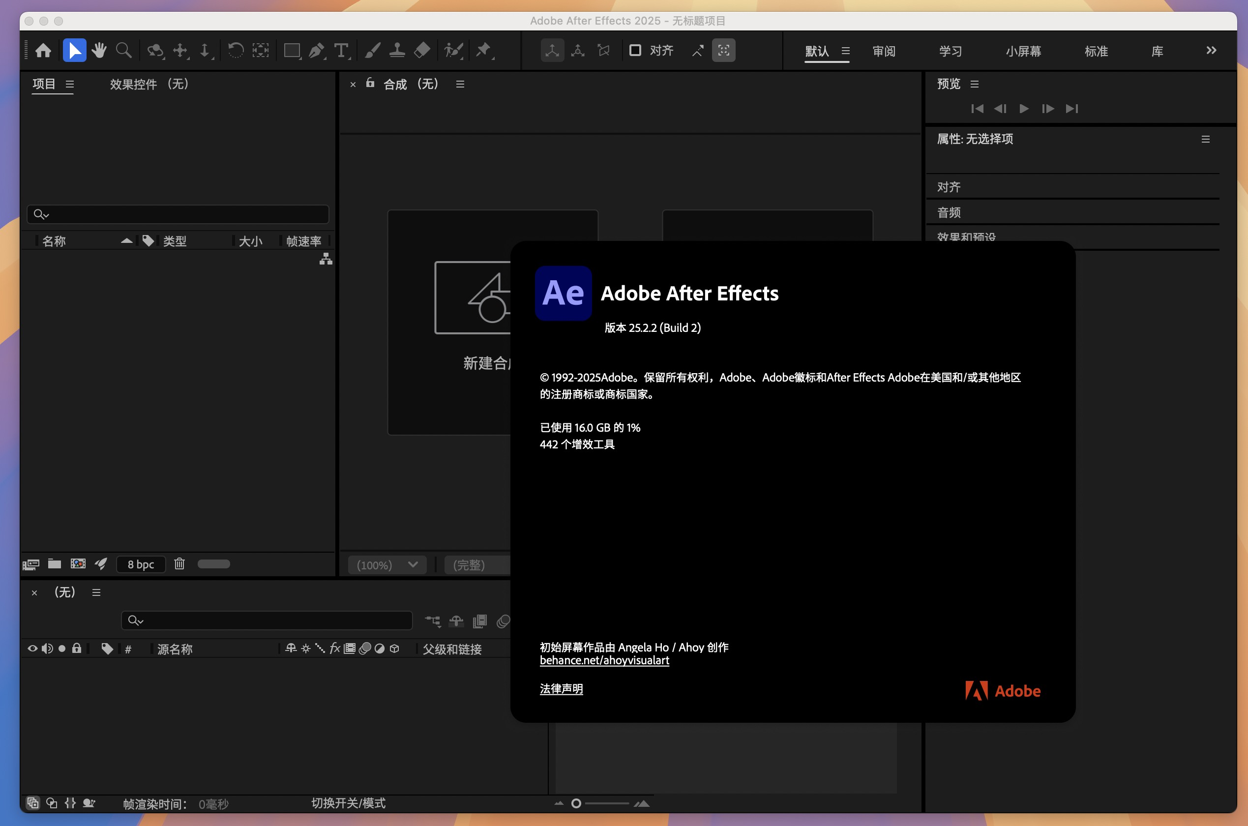 专业视频特效工具Adobe After Effects 2025 Mac 版:深度适配 M 系列芯片,AI 智能抠像/3D 合成效率翻倍!✓ 原生支持 ProRes RAW ✓ Final Cut Pro 无缝协作 ✓ 动态图形终极工具。立即探索新版功能!