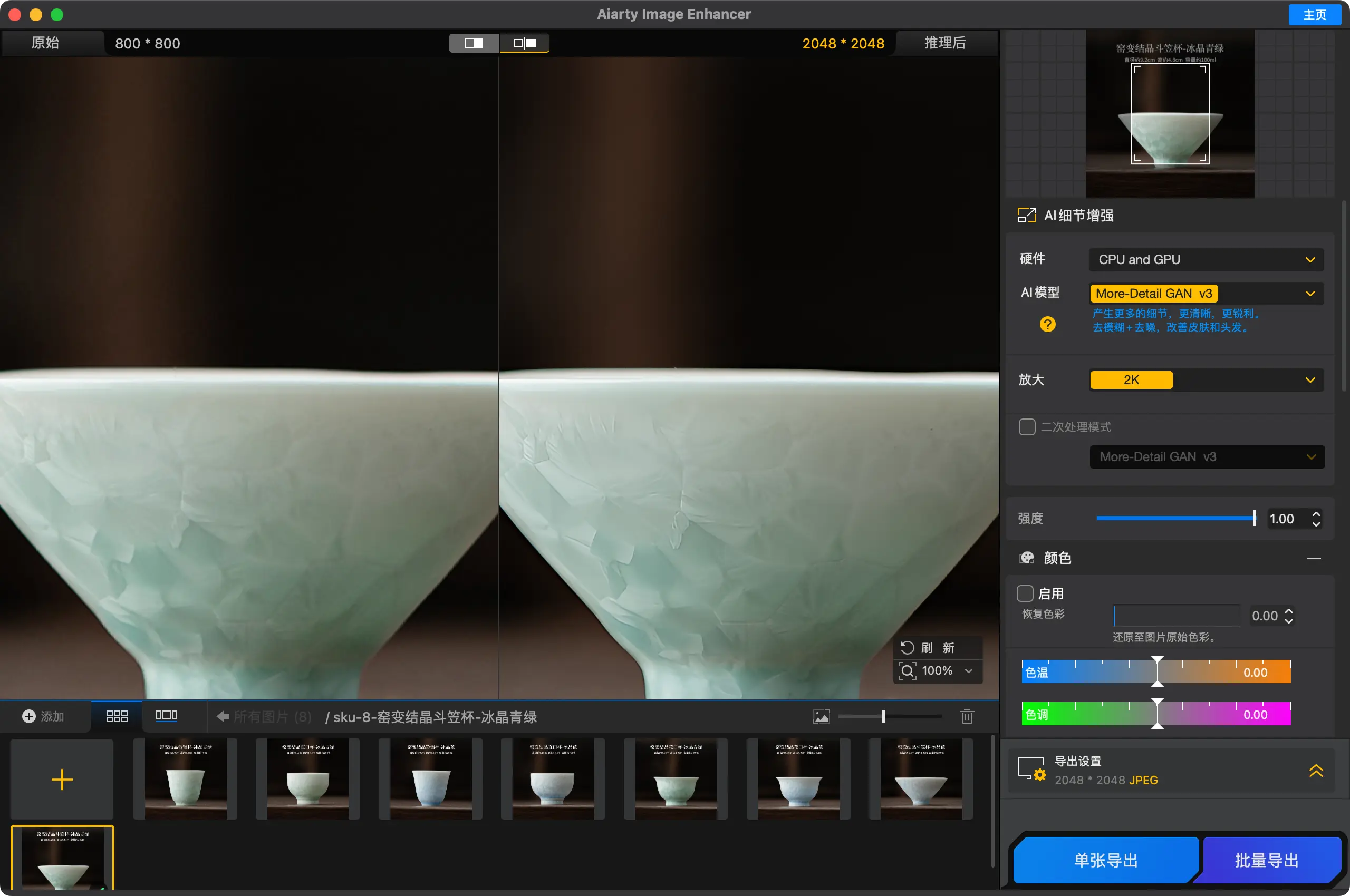 软件内置了多个专项训练的AI模型,可根据图像类型和需求选择,以达到最佳效果:
