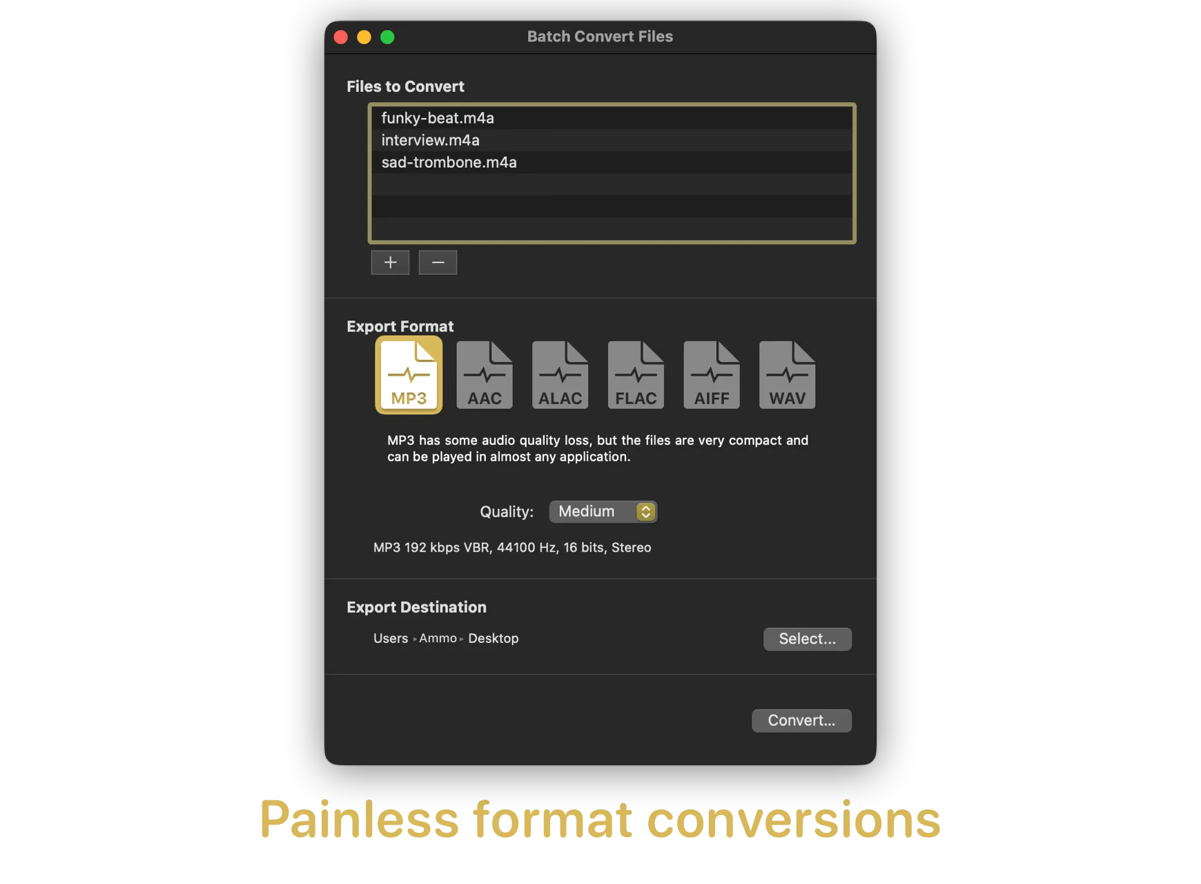 - 广泛格式兼容:可处理 MP3、AAC、WAV、AIFF、Apple Lossless 等多种音频格式。