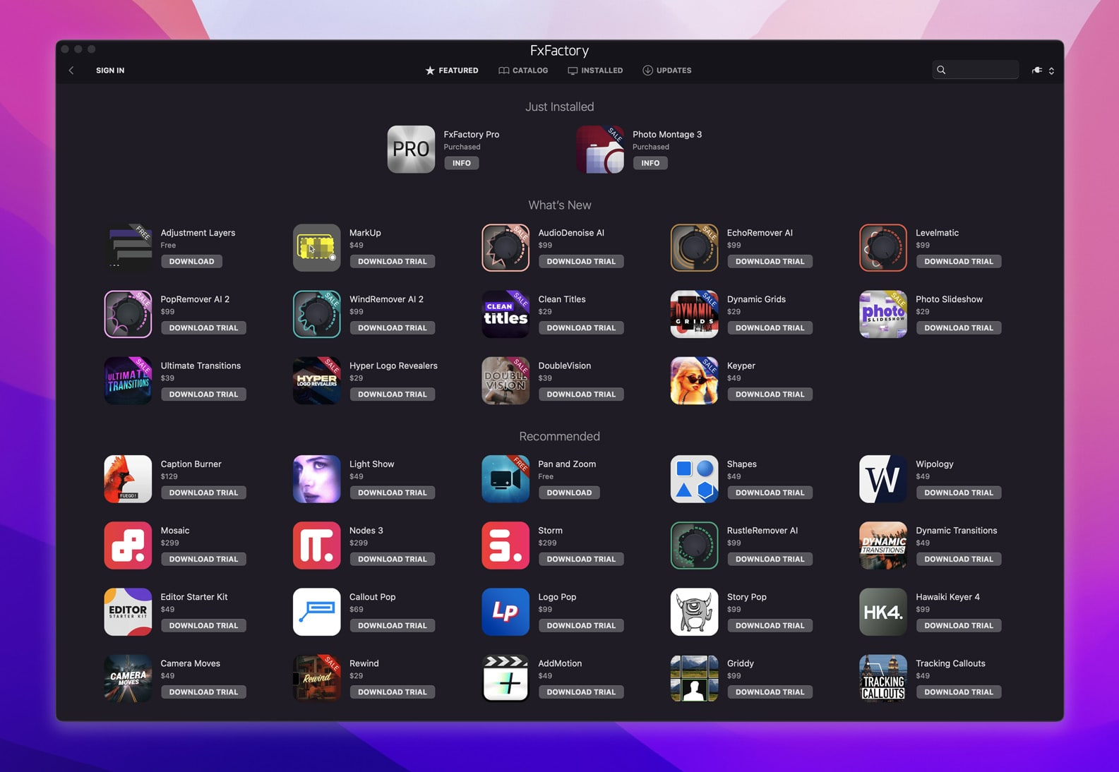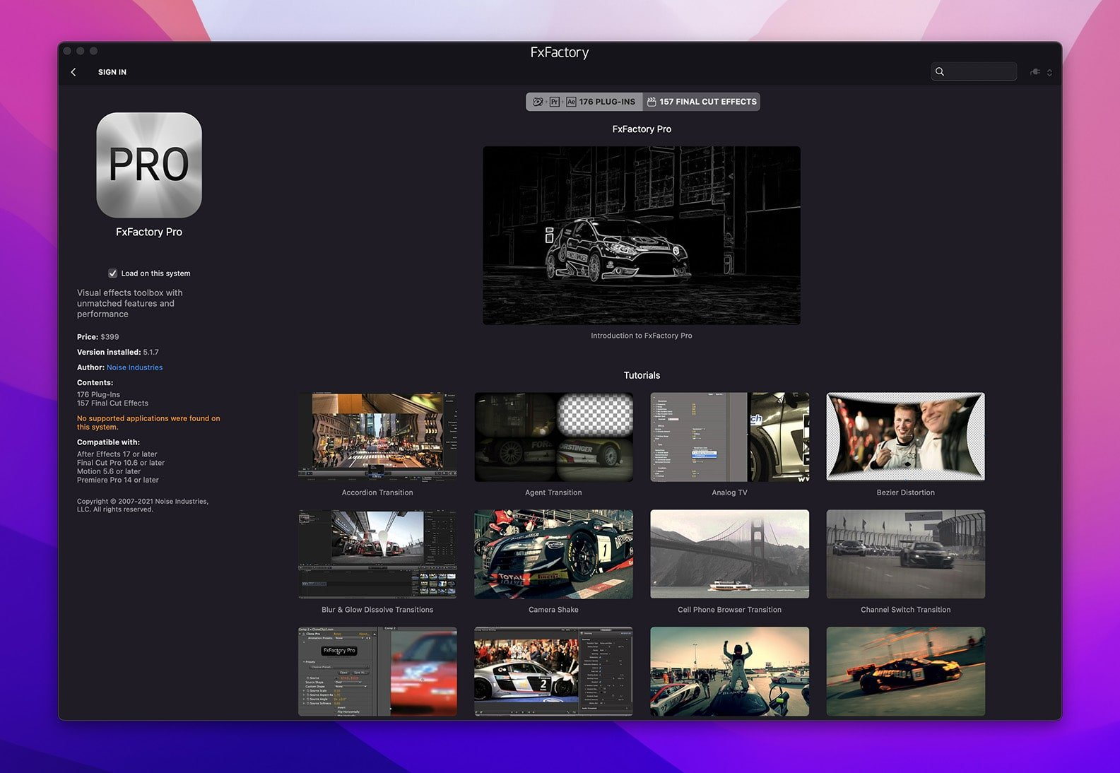 总的来说,FxFactory 是 macOS 视频后期领域一款极具价值的工具。它通过集成海量高质量插件和提供统一的管理平台,解决了特效资源分散、管理不便的痛点。无论你是想提升效率的专业人士,还是希望为视频增色的爱好者,它都值得一试。