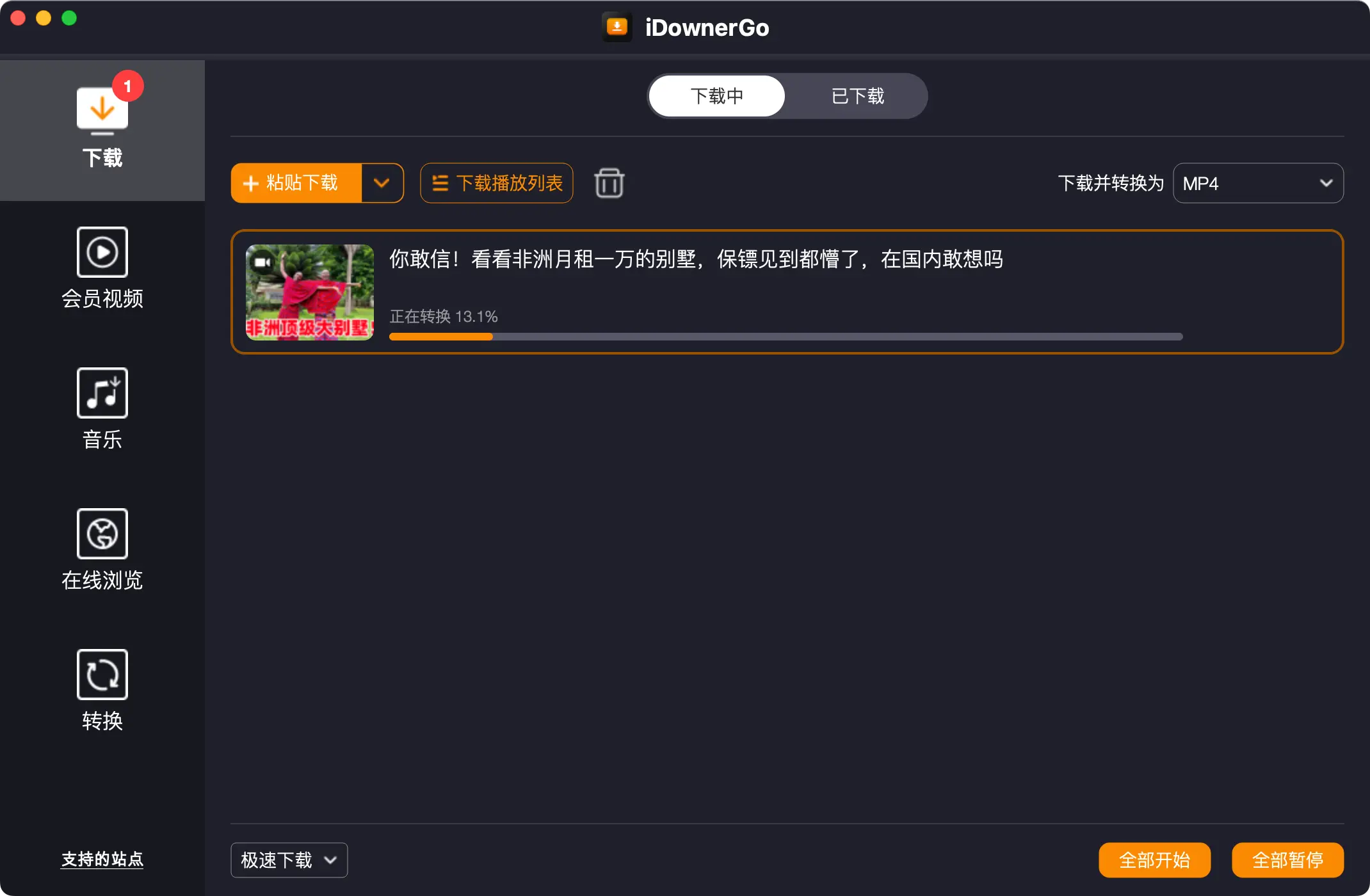 iDownerGo for Mac是一款功能全面、设计优雅的视频下载解决方案,它巧妙平衡了强大功能与用户体验,成为许多Mac用户数字工具箱中不可或缺的一员。无论是普通用户的日常需求,还是专业人士的批量下载任务,iDownerGo都能提供稳定可靠的服务。