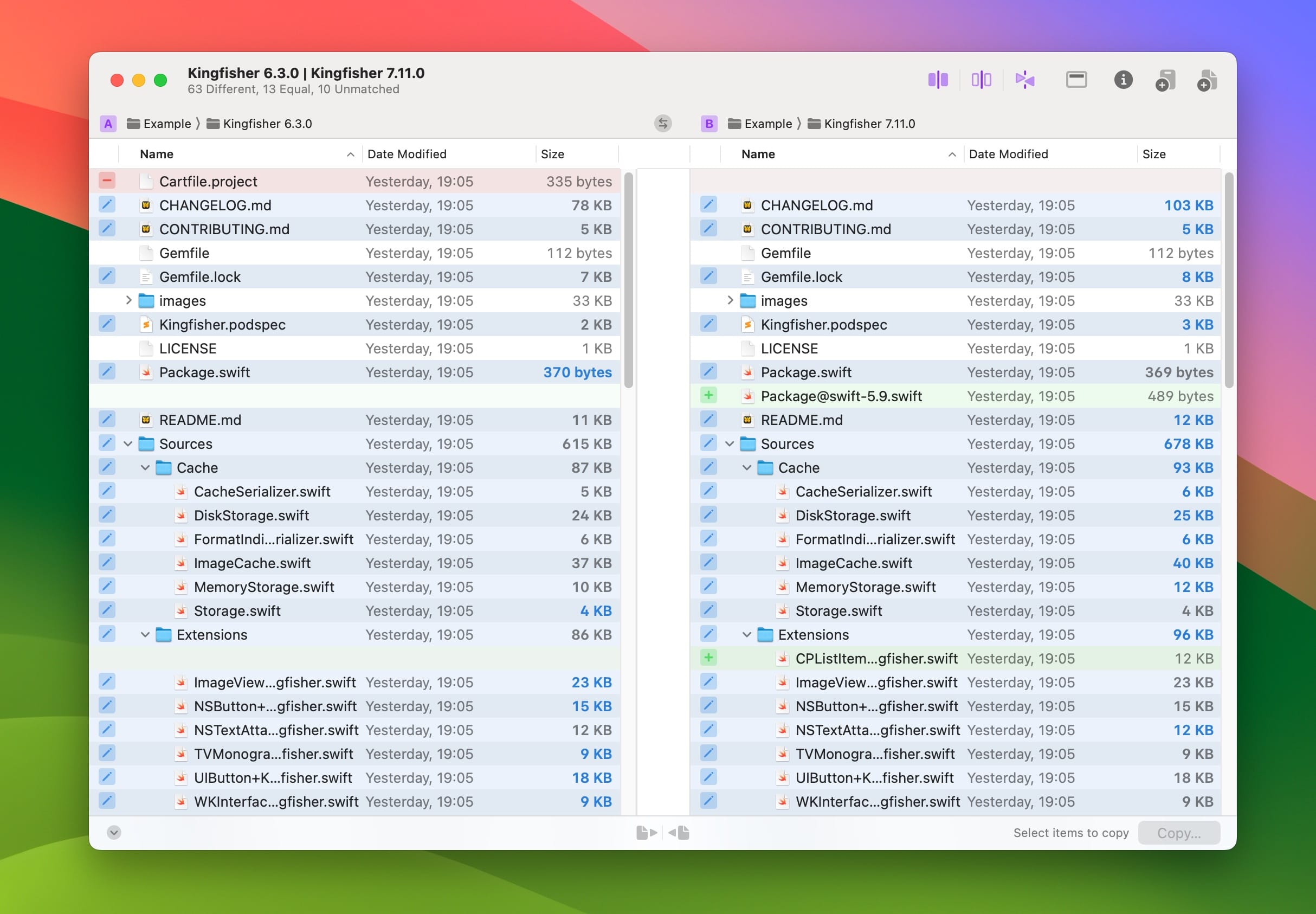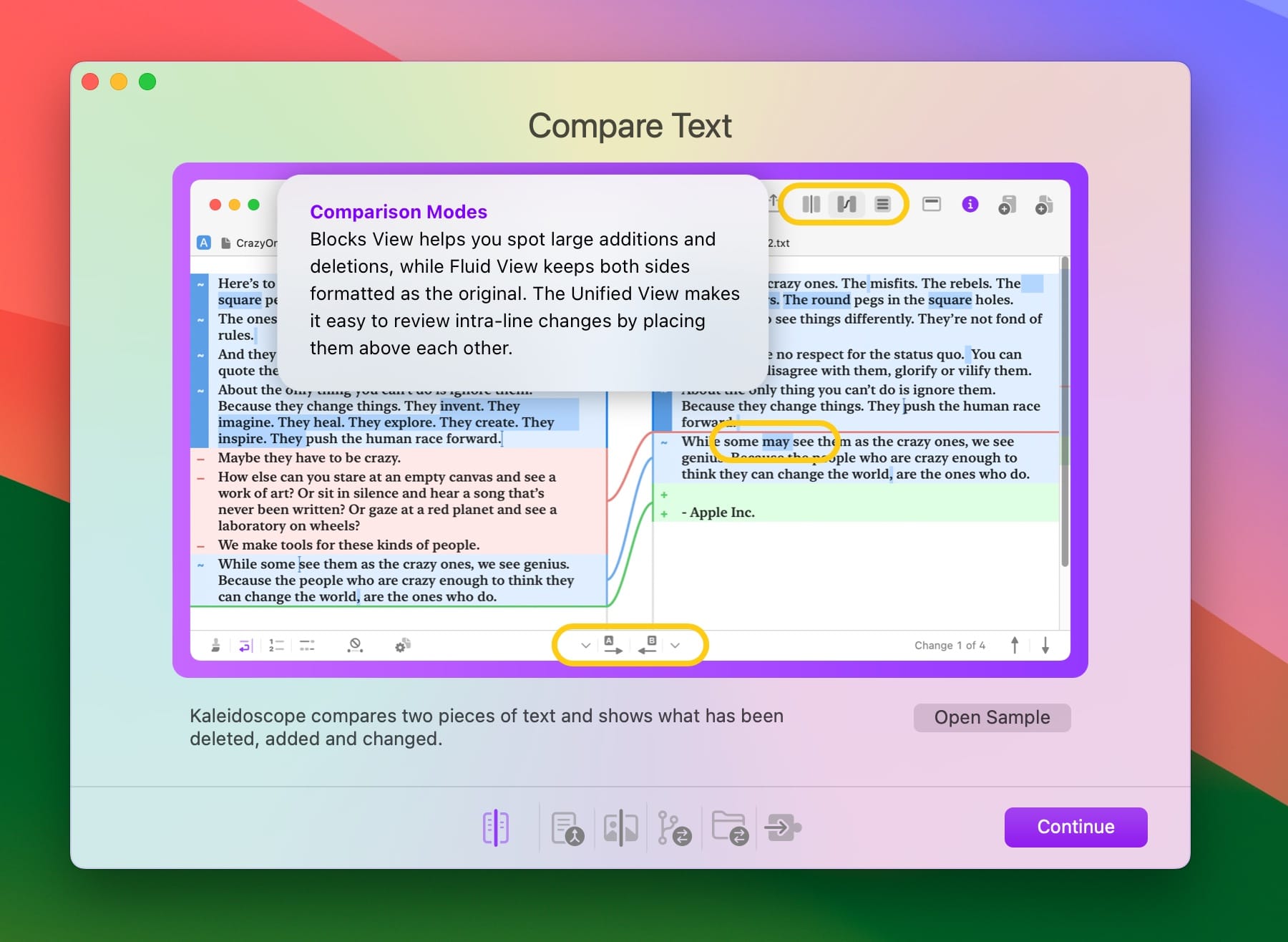 Kaleidoscope 是一款强大的应用程序,专注于快速比较文本或图形文件,并清晰直观地呈现其中的差异。