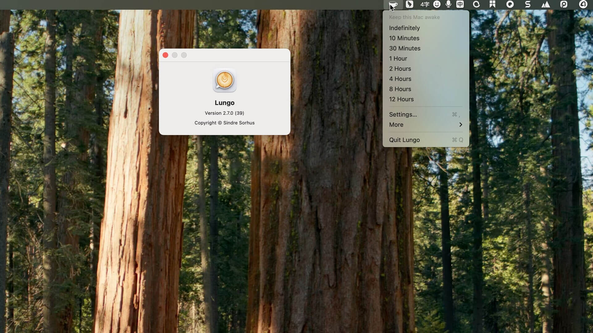 Lungo 是一款简单的菜单栏应用,它的功能十分简洁,就是阻止macOS系统自动进行休眠或屏幕变暗,可以避免因为短暂离开或不使用电脑造成正在运行的任务中断。Lungo 可以设置不同的时间档位防止休眠。