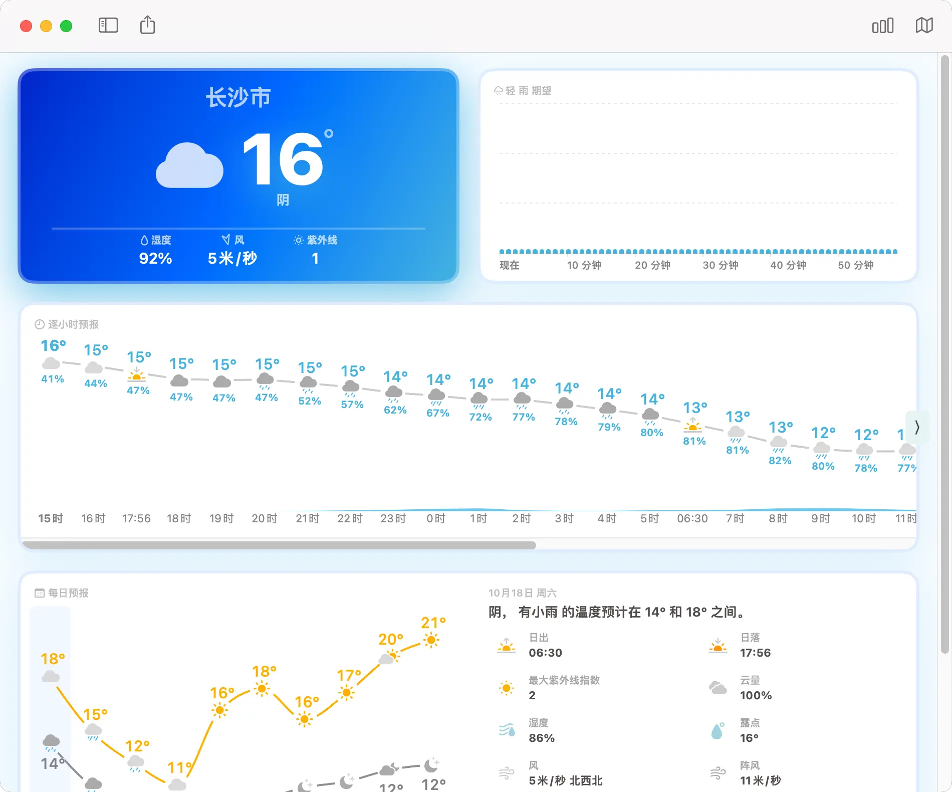 - 空气质量与紫外线预报: 提供未来24小时的AQI和UV指数预报,帮助用户做好健康防护。
