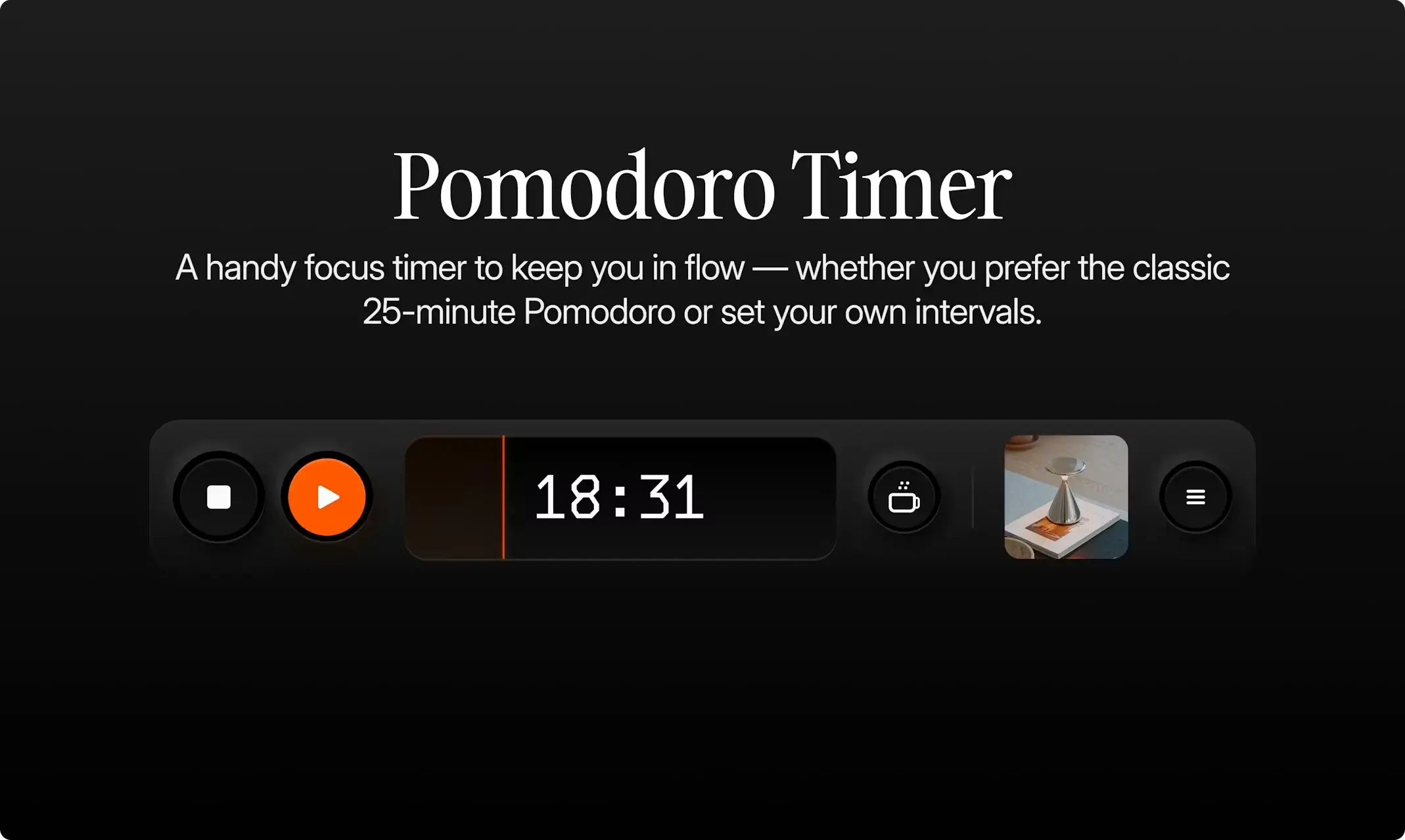 • 经典的 25 分钟专注时间段,穿插短暂休息