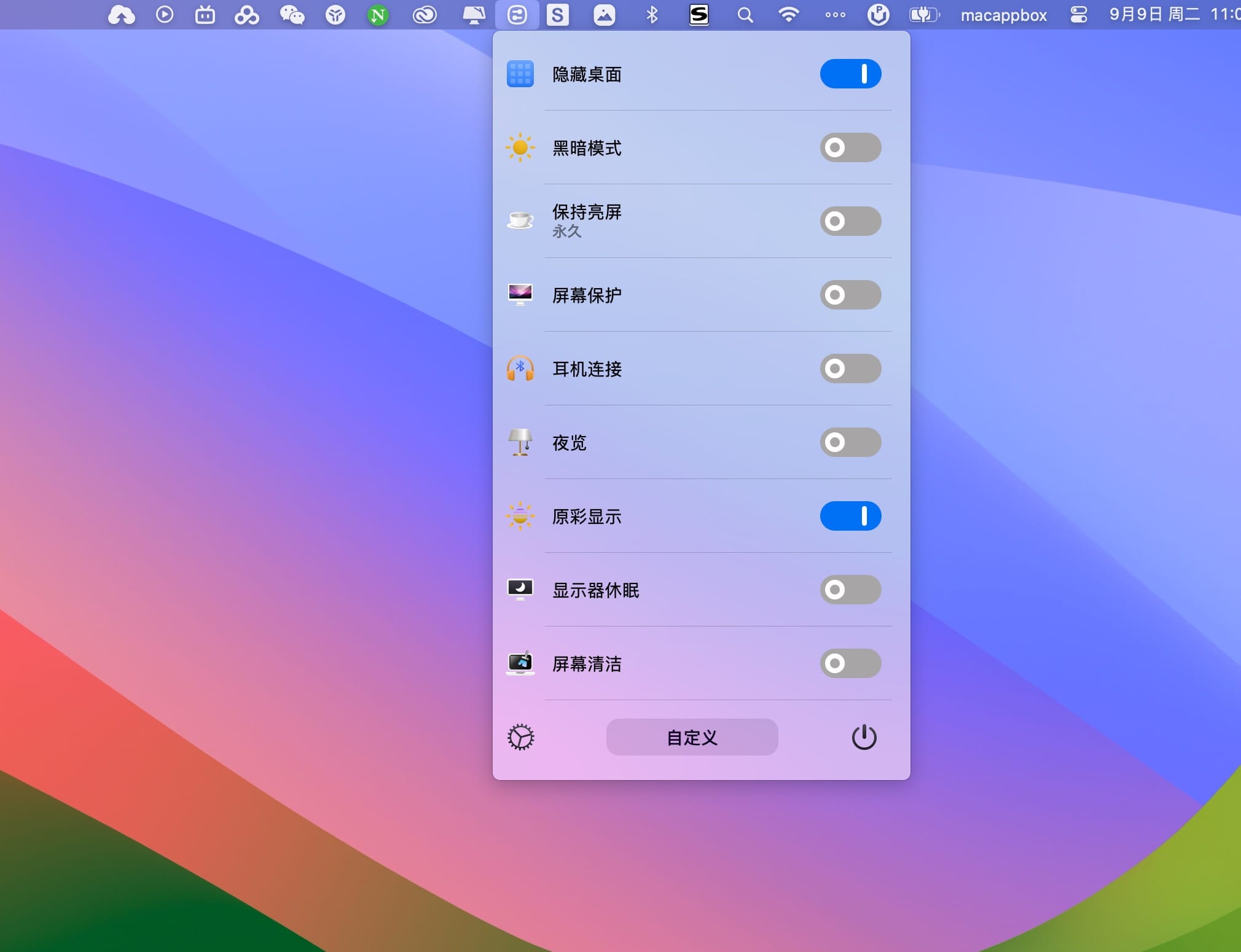 对于 macOS 用户而言,系统的优雅与稳定令人称道,但某些常用功能的切换却隐藏得有些深,有些功能只是以命令行等形式存在,并没有出现在macOS的图形界面中。想要隐藏桌面文件保持整洁?需要连接蓝牙耳机?或是快速进入黑暗模式?我们往往需要多次点击才能进入系统设置进行切换,过程繁琐,打断了专注的工作流。