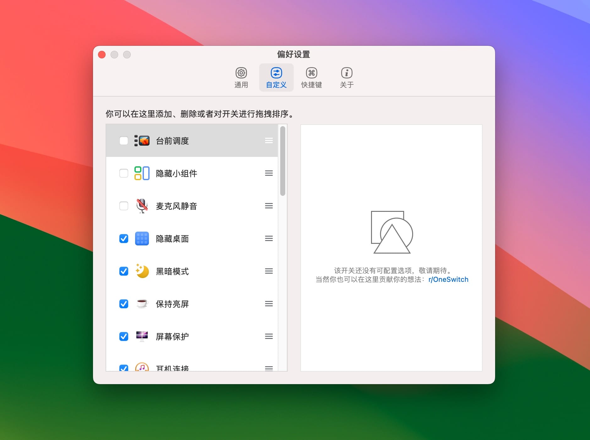 所有希望让 Mac 更好用的用户:如果你觉得某些系统操作不够便捷,One Switch 很可能就是为你准备的“后悔药”。