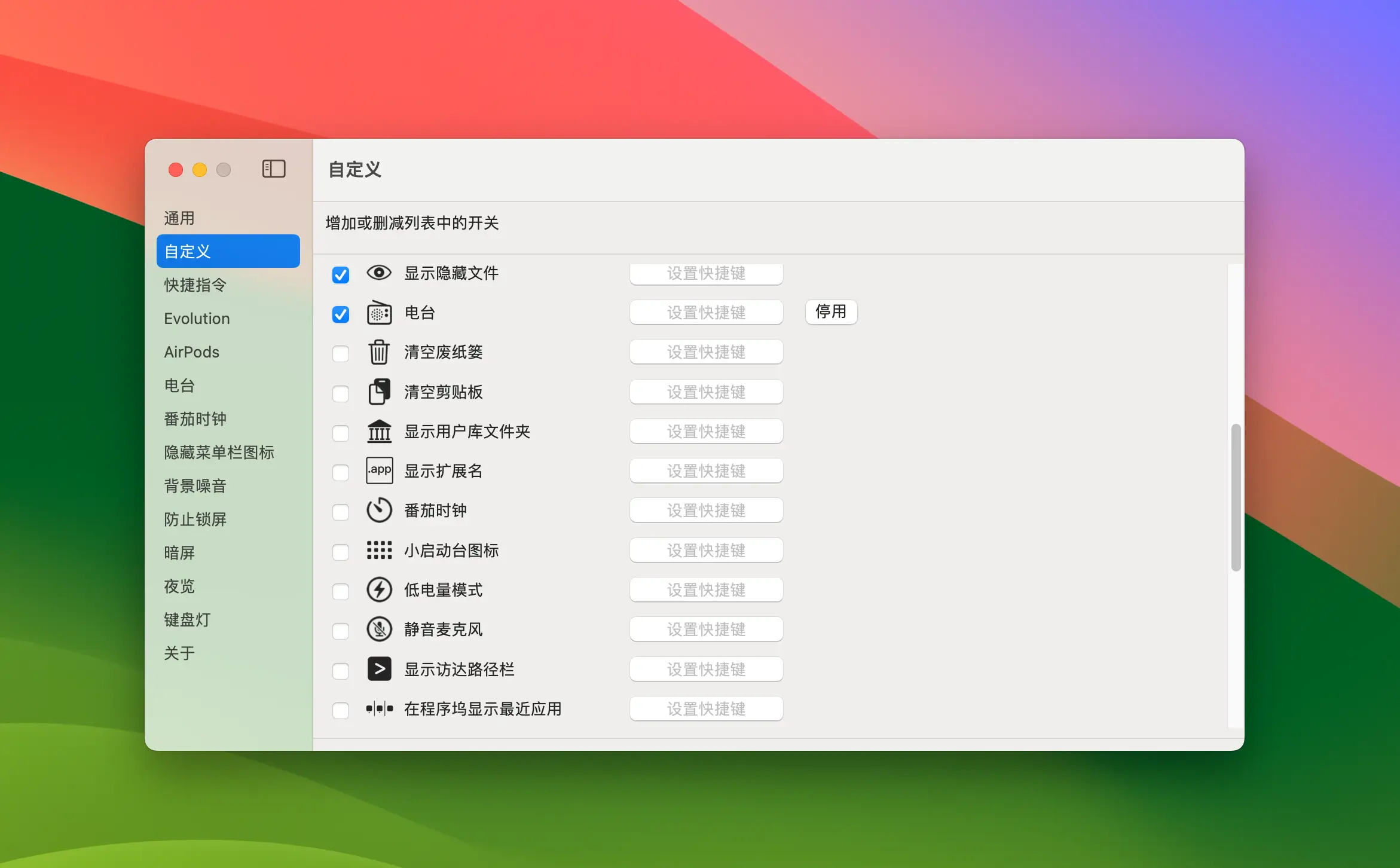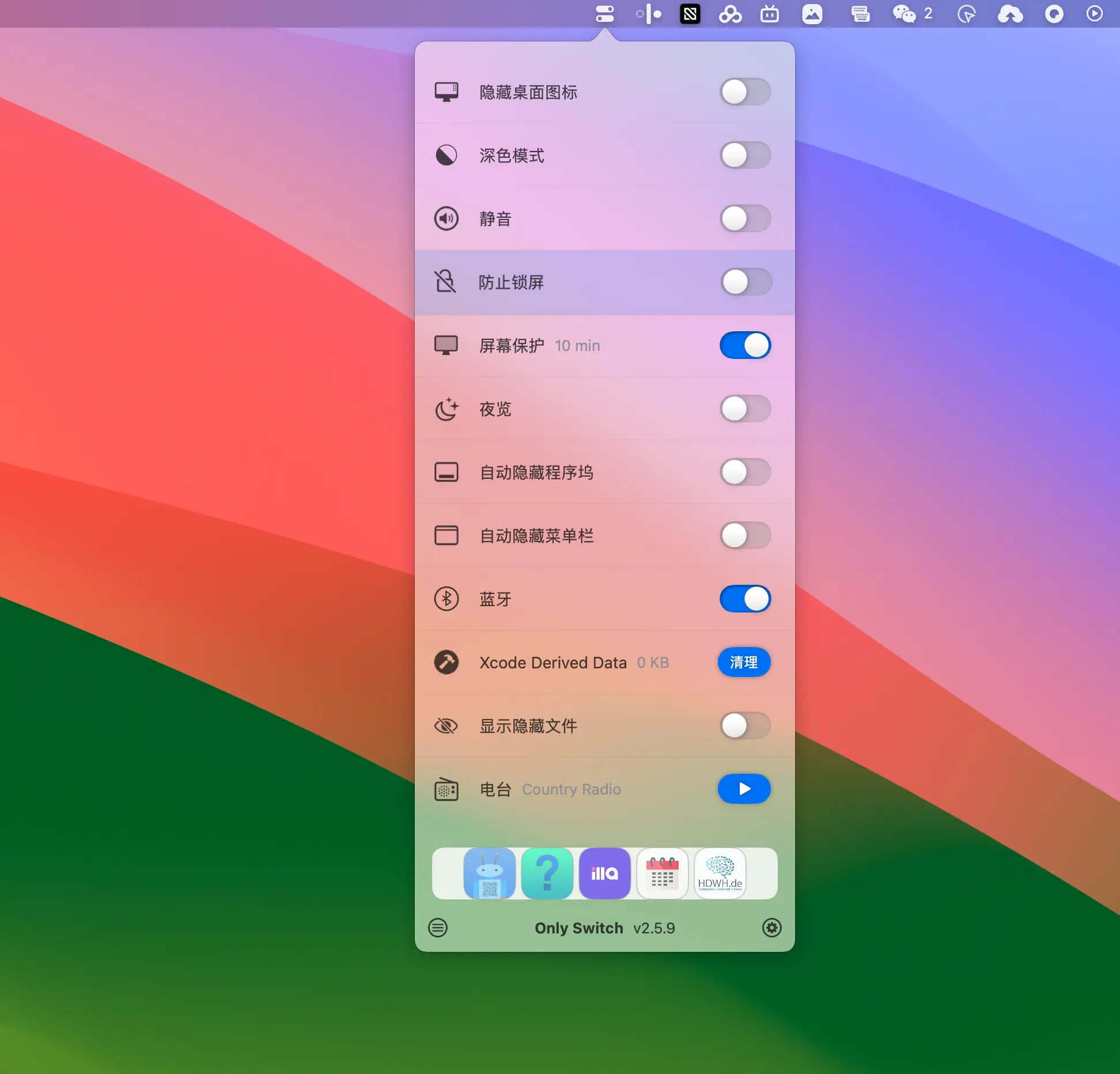 OnlySwitch:强大的 macOS 菜单栏快捷开关集合。一键优化您的系统设置,支持自定义开关与键盘快捷键,让 Mac 操作更高效、更个性化。