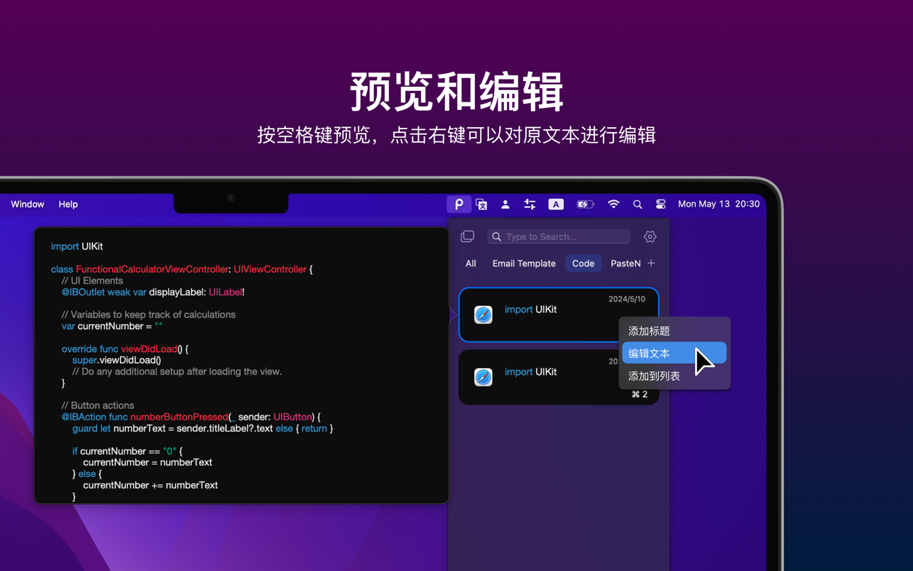 - iCloud 同步:在所有苹果设备间无缝同步剪贴板历史