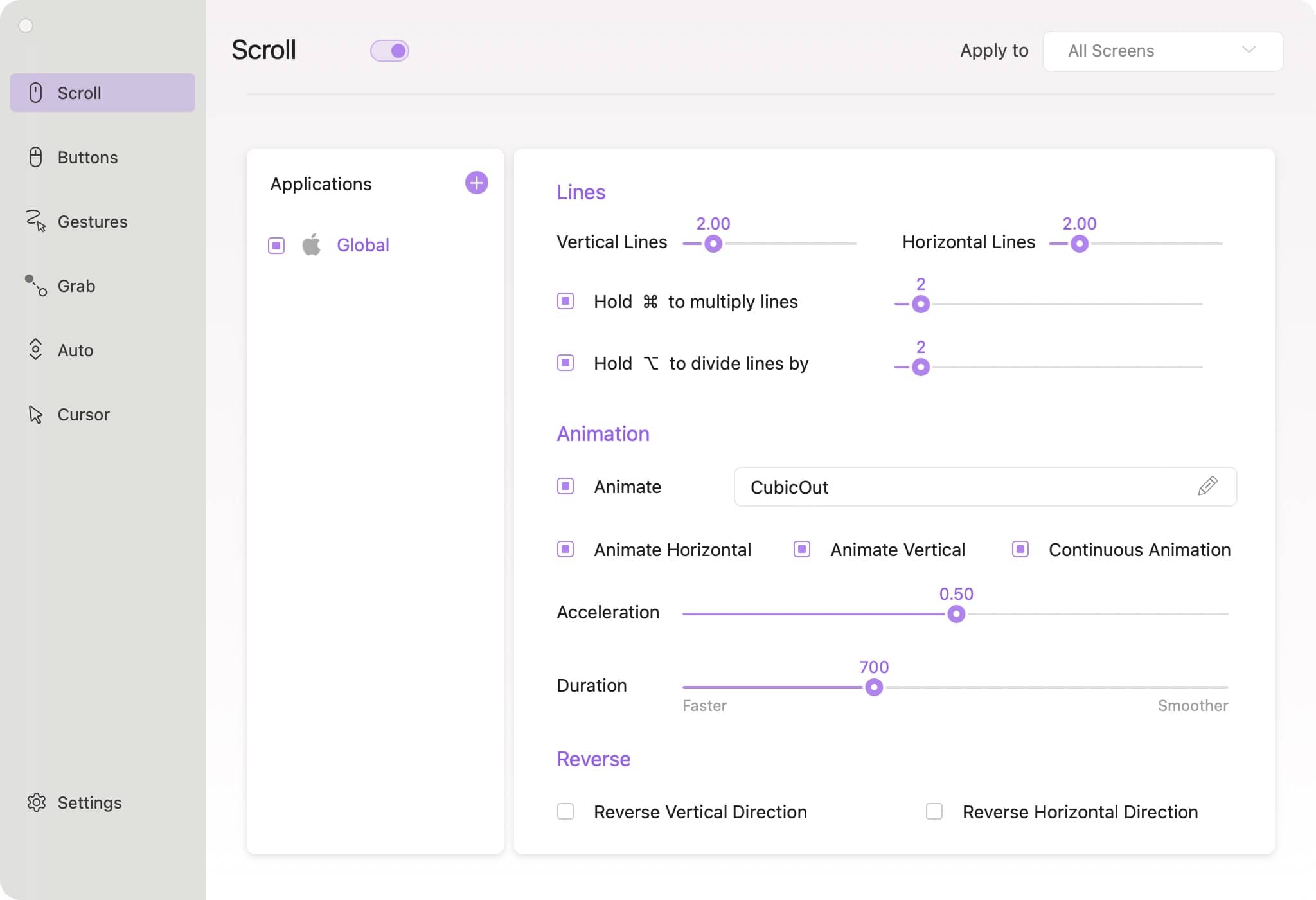 - 应用级自定义:针对不同软件(如浏览器、IDE)单独设置滚动步长、动画时间,甚至禁用加速滚动,精准适配用户习惯。