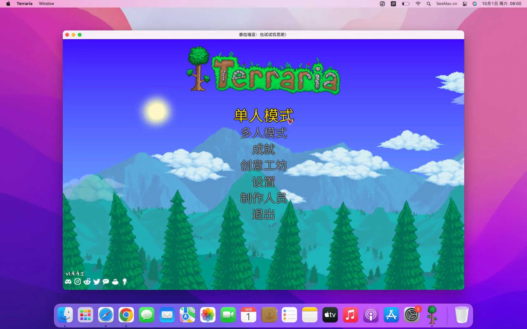 Terraria 泰拉瑞亚 是一款由Re-Logic开发的2D沙盒冒险游戏,于2011年在Windows平台首发,随后在2013年登陆Mac系统,通过Steam等数字平台提供下载。游戏以像素艺术风格呈现,融合了探索、建造、战斗和制作元素,被誉为“2D版的Minecraft”,但拥有更丰富的角色扮演和战斗系统。近年来,游戏历经多次重大更新,包括“Journey’s End”最终更新,为Mac用户带来了新生物、物品、事件和游戏模式,确保了内容的持续新鲜感。Terraria在Mac上完全适配macOS,支持原生运行,为苹果用户提供了无缝体验。