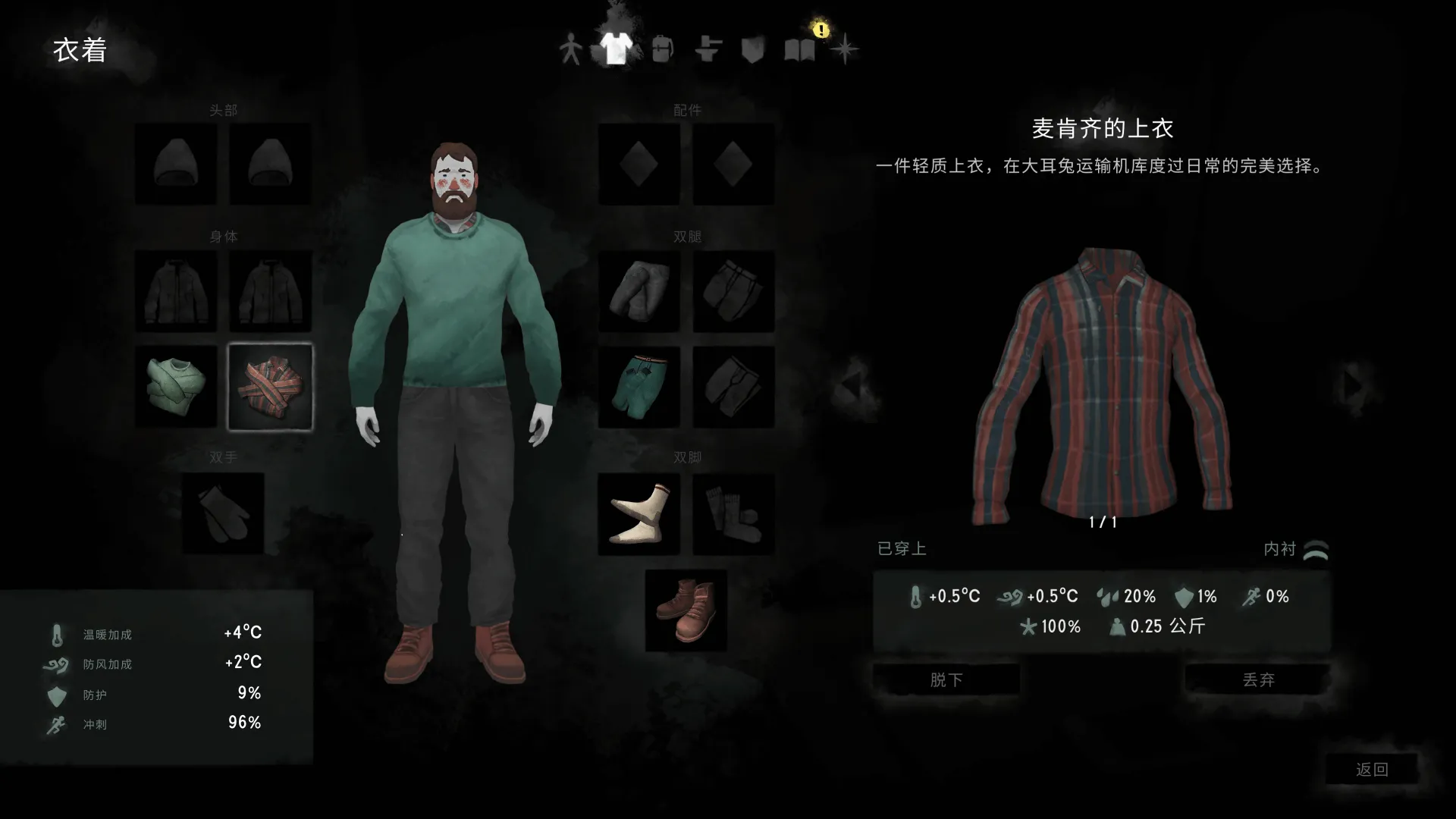 其次,装备系统挺有意思。你的斧头会钝、衣服会破、食物会变质。不是说你捡到一把枪就能用一辈子。你得修,你得找替代品,你得时刻保持库存。