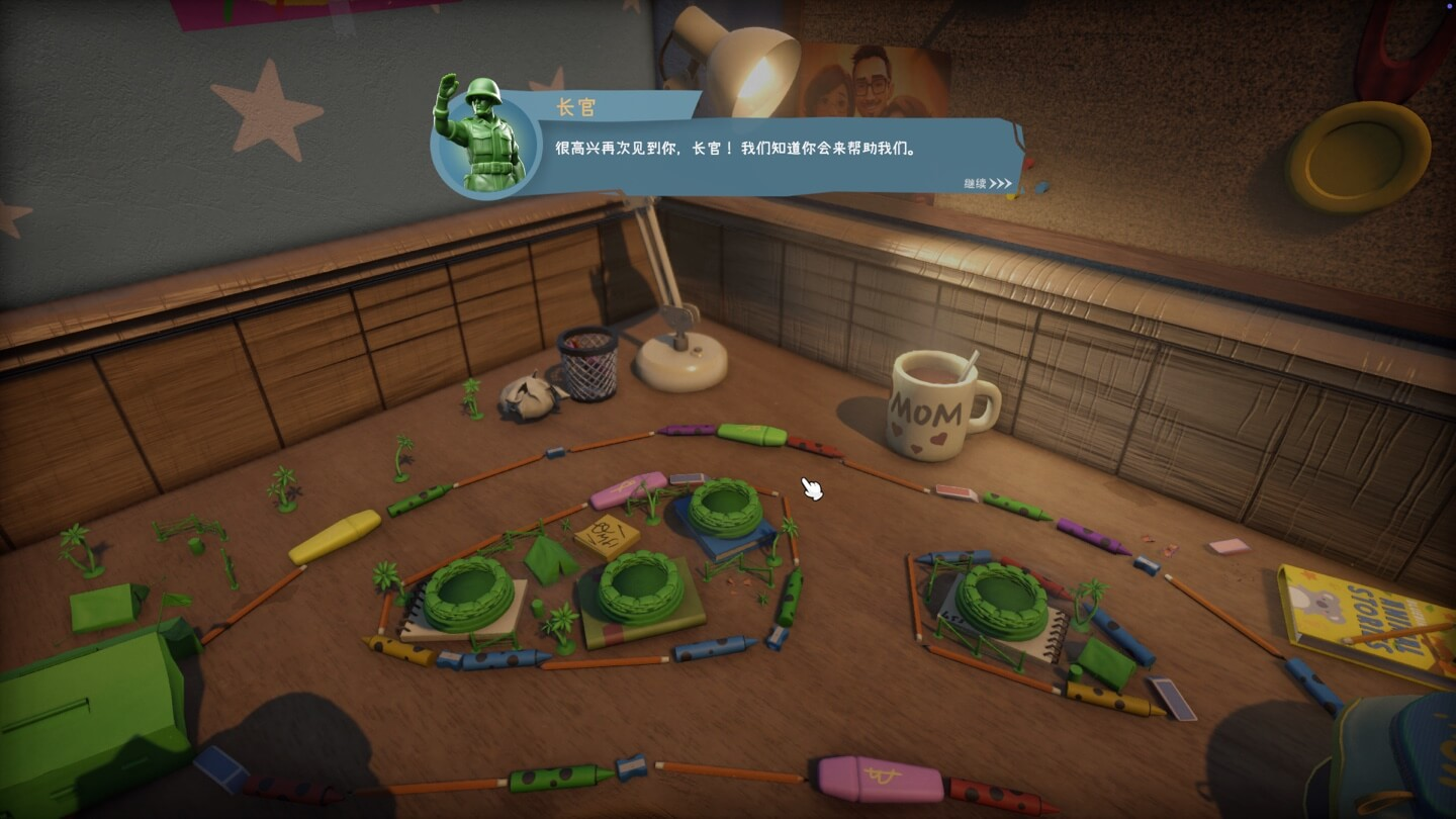 - 玩具的复仇:玩家扮演新玩具(绿色士兵)的指挥官,对抗被遗忘的旧玩具军团,保卫家园。