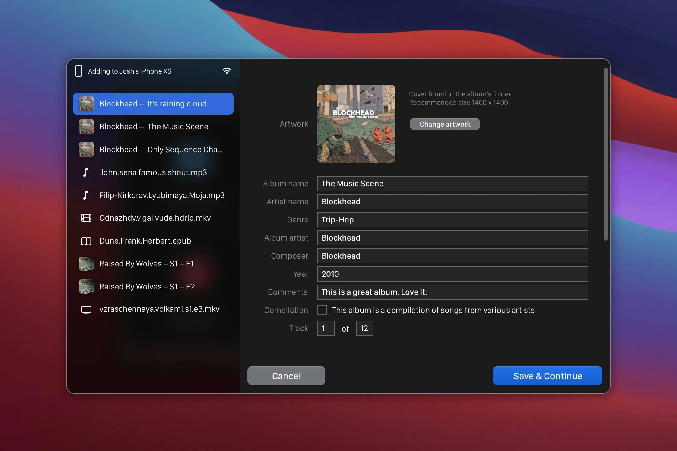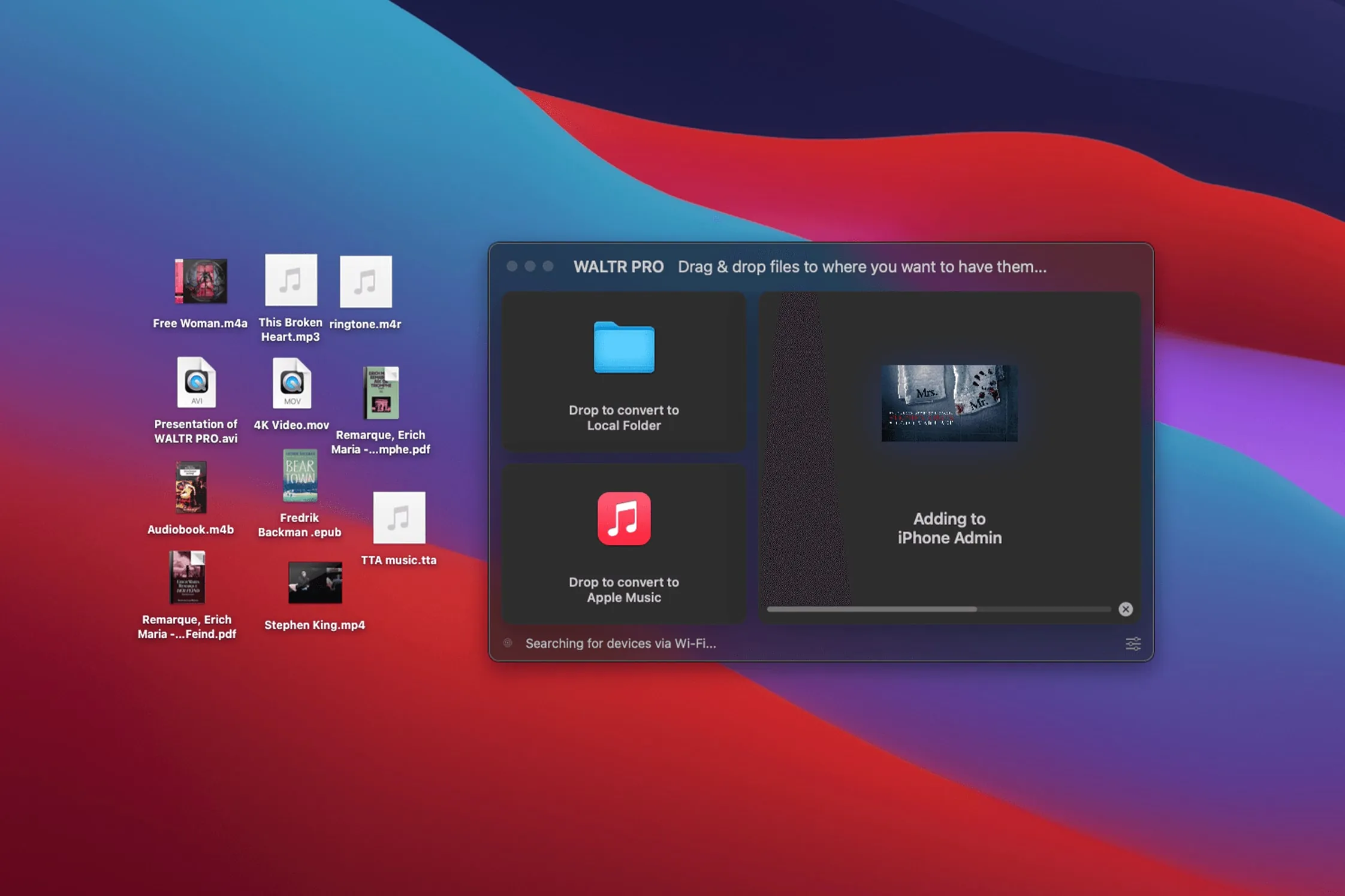 - iTunes 集成:可以直接将文件拖入 WALTR PRO 并选择导入到 iTunes 资料库,同样会进行格式转换和元数据识别。