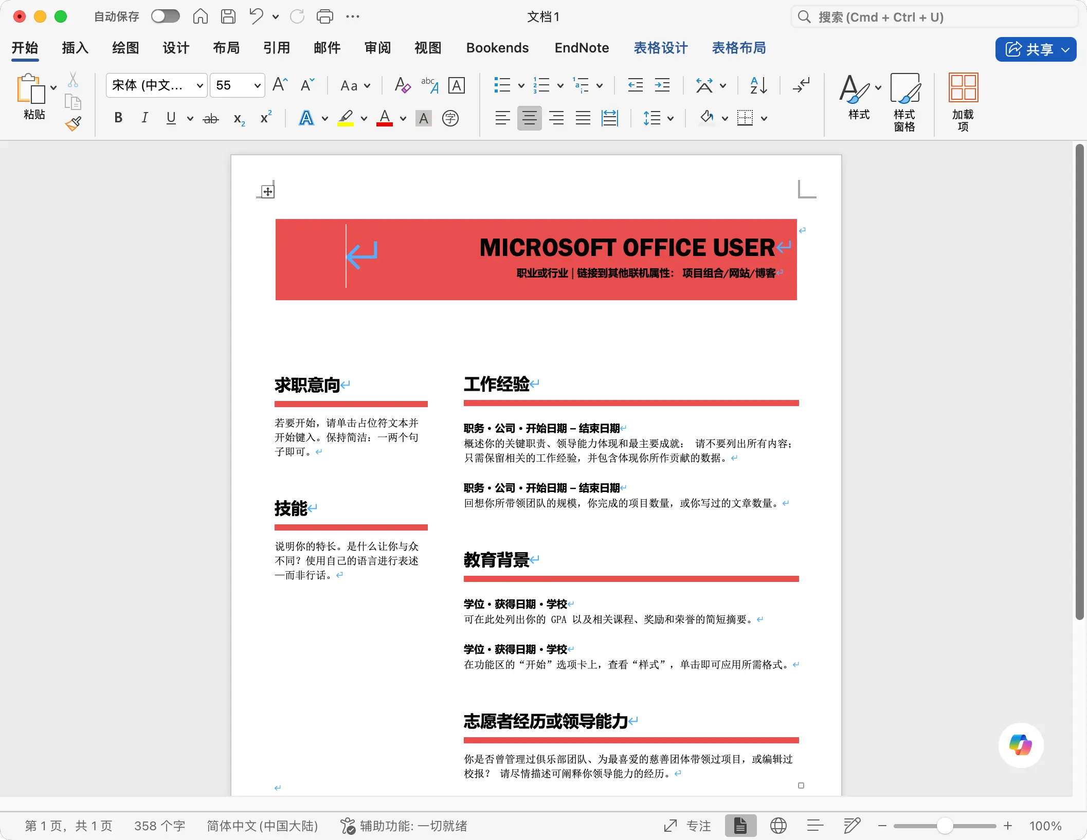 Cmd+Ctrl+F),可以隐藏所有工具栏和菜单,只留下纯净的编辑页面,让你心无旁骛地专注于写作本身。 - 与Office 365深度融合:订阅Microsoft 365(原Office 365)服务后,你可以获得持续的功能更新、1TB的OneDrive云存储空间,并在所有设备(Mac、iPad、iPhone)上获得一致的体验。